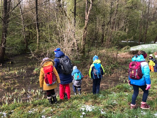 Wir beobachten Insekten, lauschen den Stimmen der Vögel und halten nach Spuren von Eichhörnchen und Rehen Ausschau. Wir haben zusammen viel Spaß in der Natur, machen viele Spiele, lauschen